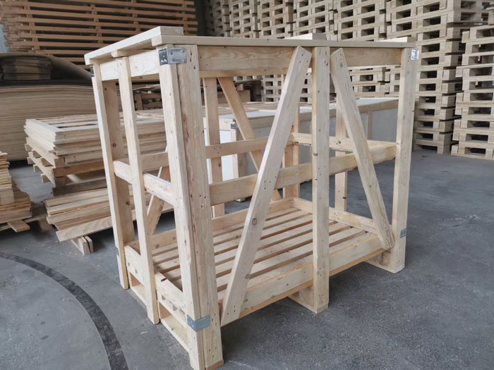 木撐合板箱是用木條做成撐框,釘上膠合板,組成容器的六面,再將這六板木撐板釘合而成箱子。它與釘板箱的承載能力基本相同,但比釘板箱重量輕、箱面平滑、外形美觀,防塵性能較好,便于印刷標記,節省木材等。